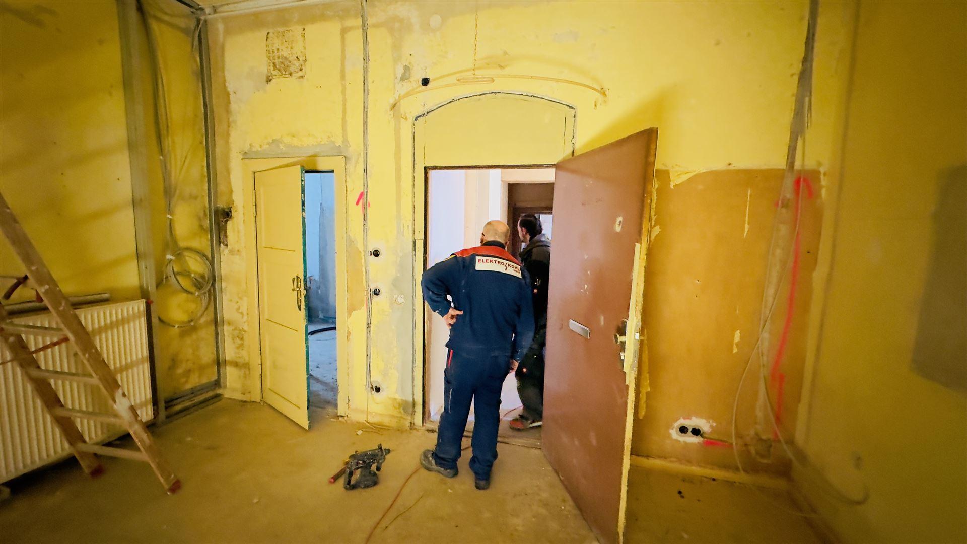 Soubor budov z vilémovského období se rozkládá na celkem šesti nádvořích lemovaných továrními halami, které jsou kompletně modernizovány. Náš stavbyvedoucí Dirk a jeho tým se starají o moderní elektroinstalace, osvětlení a energie. Byt po bytu, schodiště po schodišti, o to se staráme my. V bytě na fotografiích právě pracujeme na kabelových rozvodech.