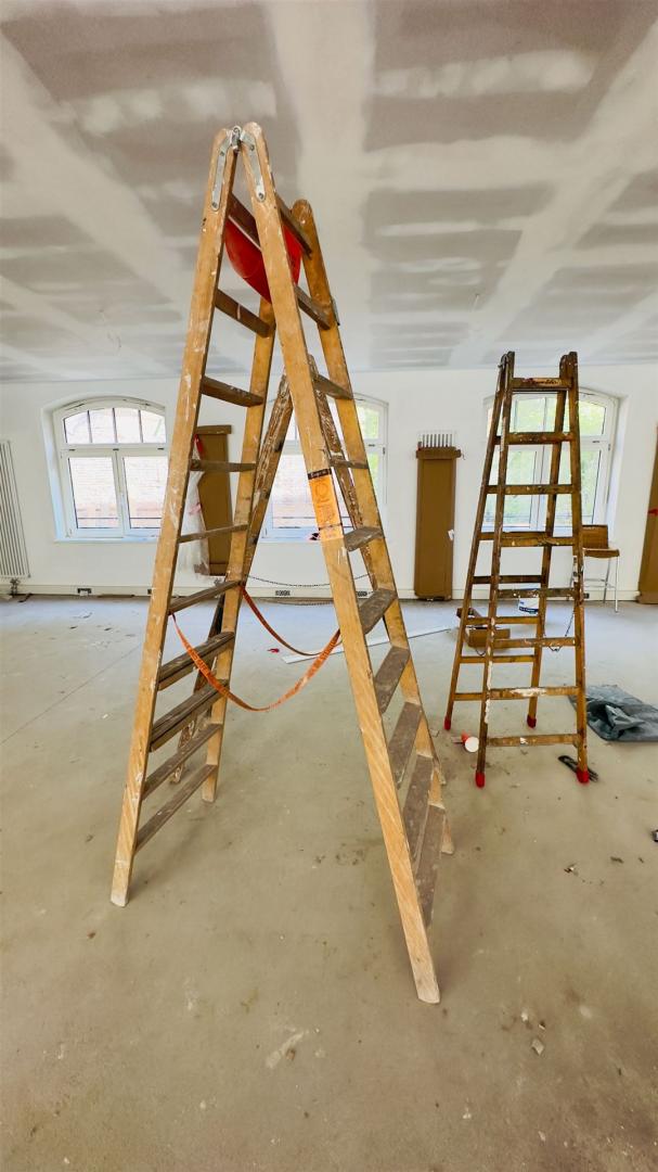 Kolonnenstraße v Berlíně-Schönebergu se toho od naší poslední návštěvy hodně událo. Ve třetím patře už vše vypadá elegantně - a na žádost budoucího nájemce náš stavební manažer Oveis posílil přípojky pro digitální média, pracovat se nyní dá i v kuchyňce a všechny přípojky pro velký mediální server jsou již na svém místě. V dalších patrech čekáme na malíře. Dobrou zprávou je, že už si postavili žebříky. Alespoň je tu světélko naděje!